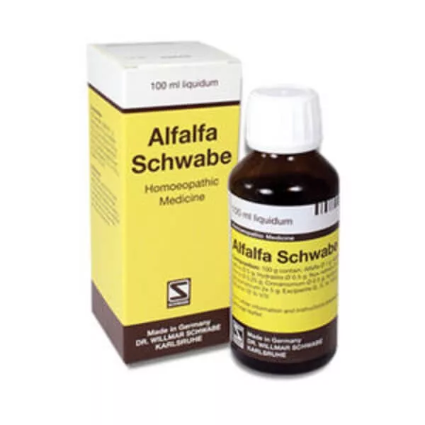 Alfalfa Homoeopathic Medicine Compositions 100 g contain: Alfalfa Ø 1 g; Avena sativa Ø 5 g; Hydrastis Ø 0.5 g; Nux vomica 2x 0;25 g; China Ø 0.25 g; Cinnamomum Ø 0.5 g; Acidum phosphoricum 2x 5 g; Excipients Q.S. to 100 g. Ethanol 12 % (V/V). Indications Traditionally used for the treatment of stress-related illness or nervous exhaustion including neurasthenia; as well as retarded convalescence or discomfort during convalescence. Dosage: Adults: Unless otherwise prescribed, adults take one tablespoonful three times a day. Children: Unless otherwise prescribed, children should receive no more than one teaspoonful three times a day. Take Alfalfa one hour before meals, and preferably keep them in your mouth for a while before swallowing. As soon as an improvement is felt, reduce frequency of use. Warnings: This medicinal product contains sucrose, glucose, benzoic acid, glycerol, sodium and ethanol. The intake of larger amounts of this medicinal preparation may cause acute ethanol intoxication in particular in small children. Since this is a life-threatening condition a doctor should be consulted immediately. This is a pharmaceutical product: Keep it out of sight and reach of children! Pack Size: 100ml