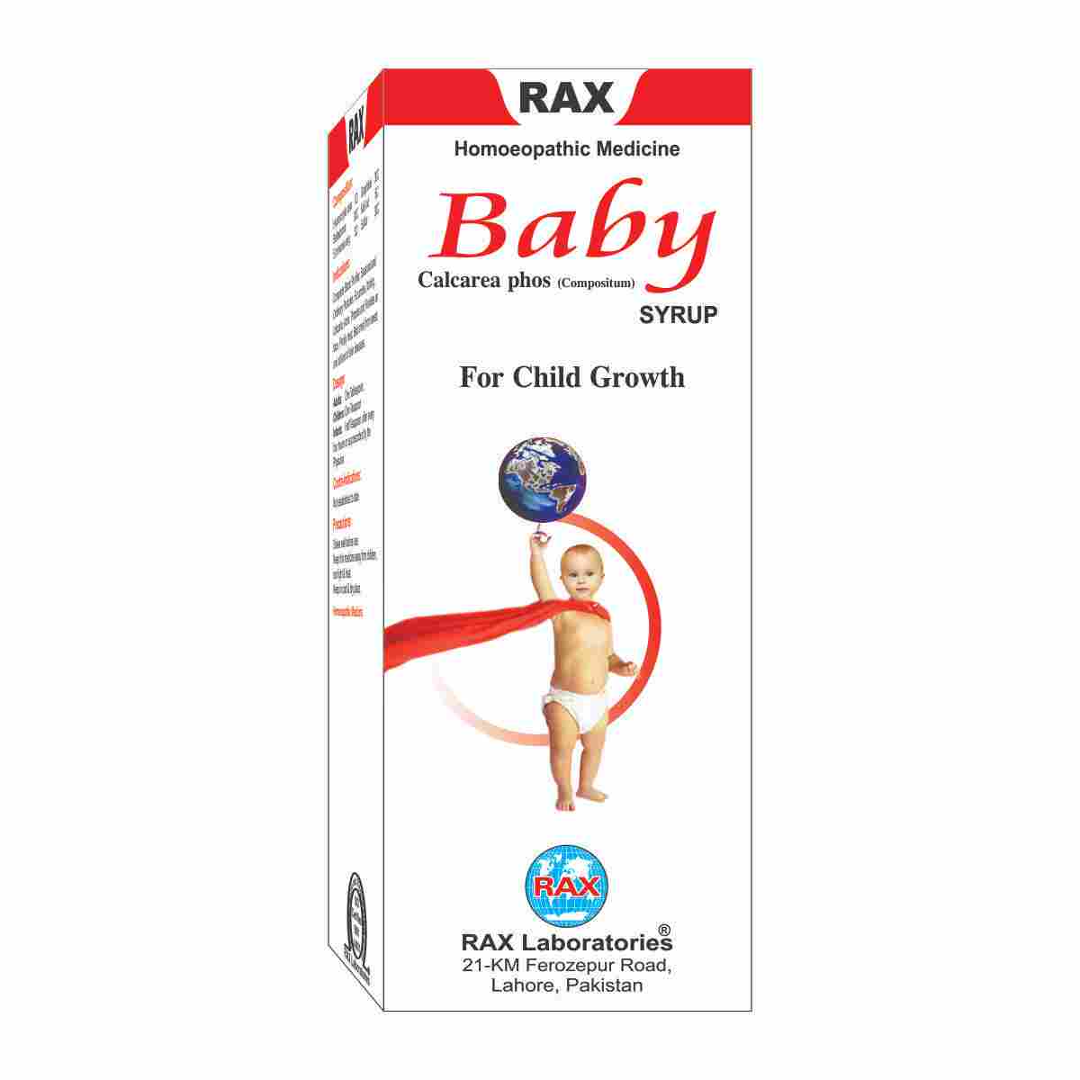Indications: Low stamina in children, anemia. Mental, Muscular and general weakness. Irritable due to pain of teething. loss of appitite, slow growth, slow walking & talking. Mental retardness, weakness of bones due to lack of calcium. Child feels uneasiness. Rax Baby syrup is a good remedy which helps the baby to be comfortable in all above symptoms. Dosage: One teaspoon after every four hours or as prescribed by the Physician.