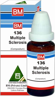 Composition: Formic AcidD200+200C, Lathyrus SativusD200+200C, Para BenzochinonumD200+200C, Plumbum MetD200+200C, Poliomyelitis NosodeD200+200C, Tetanus AntitoxinD200+200C Specific Indication: Multiple sclerosis is classified according to the frequency and severity of neurological symptoms. Early symptoms of the disorder may include blurred vision, blind spots, muscle weakness, numbness and pain. General Indication: Multiple sclerosis is a progressive degenerative disorder that affects the nerve fibers in the brain and spinal cord. Multiple sclerosis also causes scaring and hardening of the nerve fibers usually in the spinal cord, brain stem and optic nerve which slows nerve impulses and results in weakness, numbness, pain and vision changes. The different nerves are affected at different times so multiple sclerosis symptoms often worsen, improve and develop in different parts of the body. Initial symptoms of the multiple sclerosis may be brief and mild. The first serious attacks usually lasts weeks or months and occur between the ages of 20 to 40. The common early symptoms includes sensory abnormalities that tingling, numbness, itching, tightness, burning, shooting, pain in the back or limbs, difficult in walking, eye pain, vertigo, dizziness, uncoordinated movements, mood swings and depression. Dosage: Adult: 10-15 drops, children half of the same, 3-4 times a day in some water or as prescribed by a Homoeopathic doctor. Availability: 30mL drops standard quality packing
