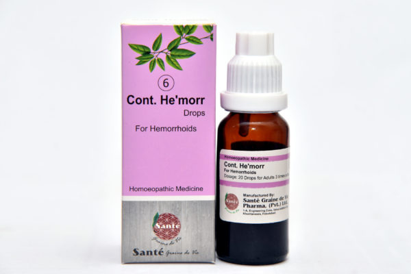 Description SD-6 CONT.HE’MORR (DROP) 20 ml For Hemorrhoids Ingredients/Composition: 100 ml contain: Paeonia off Ø Graphites 12DH China 3DH Aloe 12x Calcium Fluor 12DH Aesculus Hip 12DH Rathania Ø Indications For all types of bleeding or blind piles and further complication burning and itching of anus Dosage and administration: If not differently prescribed adults take 20 drops three times a day. Children take 10 drops three times a day. For pediatric doses. Consult your health care practitioner. One bottle containing 20 ml liquid for oral administration, containing the active ingredients in the strengths listed under description. Warnings and Precautions: If symptoms persist, contact a licensed health care practitioner. If you have known sensitivity to any of the ingredients, please consult your licensed health care practitioner before use. If you are pregnant or breastfeeding, seek the advice of a health care professional before use. Keep out of reach of children. Pack size: 20 ml liquid