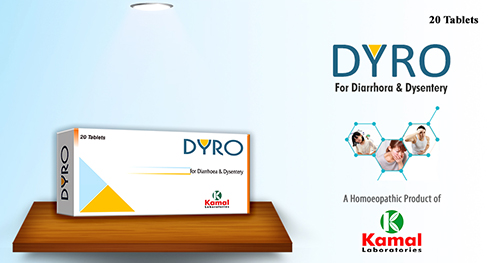 DYRO (TABLETS) For relief in all types of diarrhoea Indications / Symtoms : For effective relief in diarrhoea, dysentery (blood diarrhoea), gastritis, food poisoning and viral/bacterial diarrhoea. Composition : Kurchi 2x, Colocynthis 6, Merc.sol 6, Ferr.phos 4, Kali mur 3x, China off 3x Excipients = q.s Description : For Further details, please read out our article GIT Health Awareness Dosage : Adults:1 tablespoon three time a day Childern: 1 teaspoon three times a day Infants : 1/2 teaspoon three times a day or as directed by the physician. Group : Compounds Therapeutic Index : Diarrhea, Dysentery