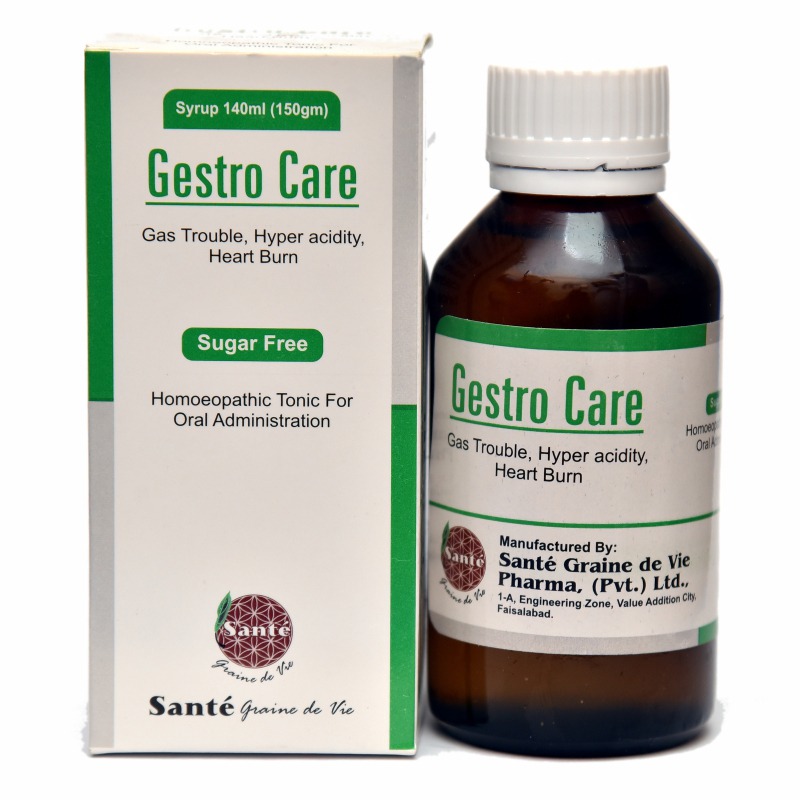 Description SS-04 GESTRO CARE (syrup) 140 ml Gas trouble, hyper acidity, heart burn Ingredients/Composition: 150 gm contain: Magnessium phosphoricum 12x Argentum Nitricum 30 Anacardium occidental 30 Carbo vegetabilis 30 Kalium muriaticum 7x Nux vomica 30 Indications For acidity of stomach, gastritis, heartburn, indigestion, frequent belching, bloating, flatulence and the feeling of pressure, discomfort in the stomach Dosage and administration: If not differently prescribed adults take 1 tablespoon children 1 teaspoon twice a day. For pediatric doses. Consult your health care practitioner. One bottle containing 140 ml solution for oral administration, containing the active ingredients in the strengths listed under description. Warnings and Precautions: If symptoms persist, contact a licensed health care practitioner. If you have known sensitivity to any of the ingredients, please consult your licensed health care practitioner before use. If you are pregnant or breastfeeding, seek the advice of a health care professional before use. Keep out of reach of children.