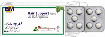 Composition: Acid Phos D5, Arnica Mont D7, Ars Alb D6, Graphites D12, Jaborandi D4, Lycopodium D6, Phosphorus D7, Sulphur D6. General Indication: Hair support tablet contains natural homoeopathic ingredients. Its active composition has special effect on the hair, stimulates the hair follicles, controls and prevents dandruff, stops falling of hair, premature grey hair and hair with split ends. These problems may be the result of dietary abnormalities or atomospheric pollution. This BM-remedy may be helpful for better growth, repair of roots and ultimately all the problems of hair are removed. Dosage: Adult: two tablets after breakfast, Children: half of the same with water. Availability: 60 blistered tablets standard quality packing