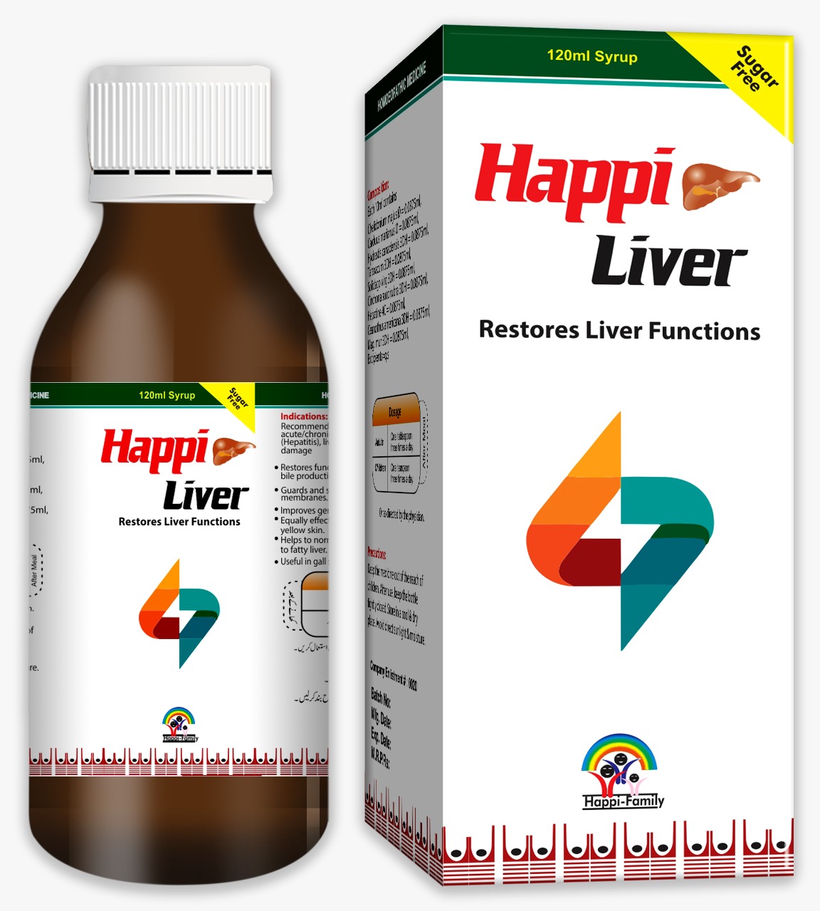 Happi Liver Syrup (Sugar free) Restores Liver Function Indications / Symtoms : Supportive for acute/chronic inflammation of liver (Hepatitis), liver cirrhosis and toxic liver disease. Restores function of liver and balances bile production. Guards and soothes hepatocellular membranes. Improves general well-being of liver. Equally effective for jaundice and yellow skin. Helps to normalize the ALT/SGPT level due to fatty liver. Useful in gall stones and spleen complaints. Also relieves in lethargy, drowsiness and inactivity due to liver fats. Composition : Chelidonium majus �, Carduus marianus � , Hydrastis canadensis 3DH, Taraxacum 3DH, Solidago virg 3DH, Cinchona succirubra 3DH, Hepatine 4C, Ceanothus Americana 3DH, Mag. Mur 3DH Excipients = q.s Dosage : Children 1 Teaspoon three times a day, Adult 1 Tablespoon three times a day. Group : Combination