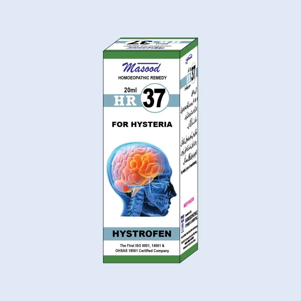 HR 37 is best for all hysterical conditions. Effective in extreme nervousness. Indicated in mental irritability. Useful for suffocation in throat. Treats the hysteric fits before menstruation. Relieves the anxiety with palpitation and insomnia.
