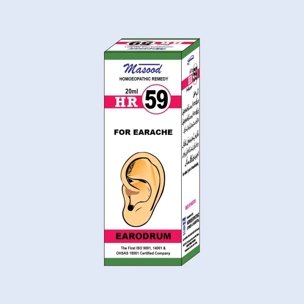 HR 59 is best remedy for ear infection. Indicted in earache due to middle ear infection. Effective for deafness, burning and itching of ears. Used in discharge of blood or pus due to infection. Reduces the ringing sensation of ears. Also helpful in earache and earwax blockage.