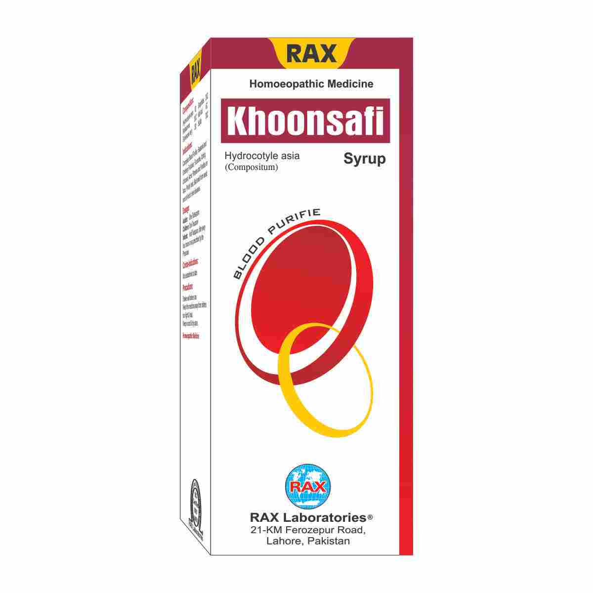 Indications: Abscess, boils, prickly heat, psoriasis, urticarial, herpes, redness of skin due to septic conditions of blood. Leucoderma, condylomata, acne, pimples, freckles, itch between fingers and inguinal region. Burning with offensive sweat. Rax Khoon Safi Syrup acts very good as a blood purifier. Dosage: One tablespoon, Children: One teaspoon after every four hours or as prescribed by the Physician.
