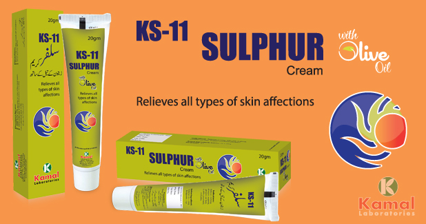 KS 11 SULPHUR Cream (With Olive Oil) Relieves all types of skin affections Indications / Symtoms : Relieves itching, allergies, eczema, pimples on face, scabies, psoriasis and piles. Composition : Active ingredient: Sulphur 2x = 2gm Excipients= q.s. Description : Sulphur is mineral and homoeopathic medicine prepared from its powder. Mostly used in all skin disorders. Major homoeopathic remedy which is used as antipsoric. Dosage : Directions for use: Apply locally. Rub well and gently to the effected part. Discontinue if skin irritation results. For external use only. Group : Combination