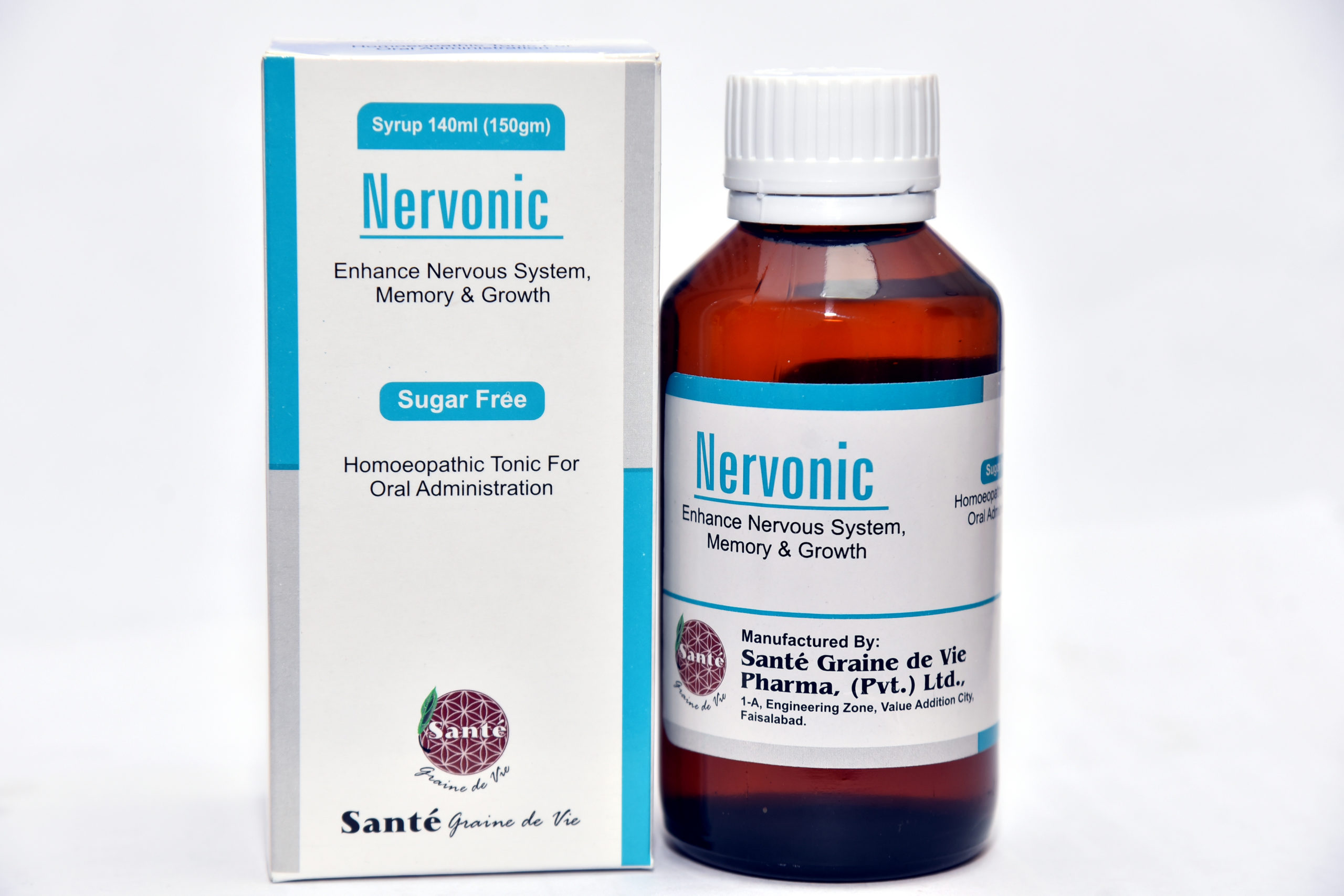 SS-05 NERVONIC (syrup) 140ml Enhance nervous system, memory & growth Ingredients: 150 gm contain: Ambra grisea 6x Kalium phosphoricum 12x Lycopodium 12x Ginkgo biloba 3x China officinalis 6x Indications Its relieves the symptoms of stress, poor memory, irritability, mental anxiousness, nervousness, improvement of vitality and treatment of general weakness.