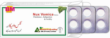 Composition: Cinnamon D1,Cuminum Cyminum D2, Hyoscyamus Niger D2,Illicium Anisatum D1, Mentha Piperita D6,Nux Vomica D3. General Indication: May help in the symptoms of dyspepsia, colic, intestinal inflammation, flatulence, indigestion, hyperacidity, gastric depression and constipation. Dosage: Adult: One tablet three times a day, Children: half of the same or as prescribed by a Homoeopathic doctor. Availability: 30 blistered tablet standard quality packing