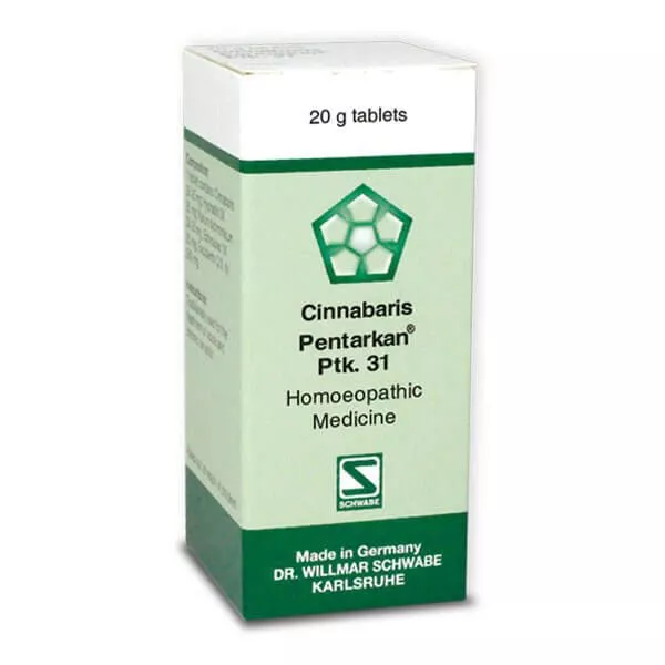 Cinnabaris Pentarkan Ptk 31 tablets are proven homeopathic tablets for the treatment of inflammation of the tonsils (Sinusitis) and sinuses of the nose. This is caused due to the opening in the mucous membrane which lined up the nasal cavity. At times air quality pollution and micro pollutants can cause headaches and symptoms of congestion. Cinnabaris Pentarkan Ptk 31 Tosils ki sozish, Naak ki dermiyani Haddi ki sozish, Nathhno ki sozish may akseer ٹانسلز کی سوزش، ناک کی درمیانی ہڈی کی سوزش نتھنوں کی میوکس جھلۤی کی سوزش میں اکسیر Compositions 1 Ptk 31 tablet contains Cinnabaris 3X 25 mg; Hydrastis 3X 25 mg; Kalium bichromicum 3X 25 mg; Echinacea 1X 25 mg; Excipients Q.S. to 250 mg. Indications Traditionally cinnabaris pentarkan ptk 31 schwabe is used for the treatment of acute and chronic sinusitis. In the case of facial swelling, fever, and severe headache. Consult your homeopath. Sinusitis problem occurs when the membranes that produce cavity is affected by inflectional bacterial with increase the mucus production. This may lead to swelling and blockage in membranes causing discomfort. *Do not self-medicate. Please consult your physician. Dosage/ Uses Adults: Unless otherwise prescribed, adults should take 1 tablet of Cinnabaris Pentarkan three to four times a day until improvement occurs. Children: Unless otherwise prescribed, children should be given no more than 1 to 2 tablets in a day. Take the Cinnabaris Pentarkan tablets half an hour before or after meals, and preferably allow them to dissolve slowly in the mouth. In acute cases, repeat the individual doses more frequently, if necessary at hourly intervals. As soon as the improvement is felt, reduce the frequency of use. Side Effects No side effects of Cinnabaris Pentarkan® Ptk. 31 are known to date. In isolated cases, hypersensitivity reactions such as skin or gastrointestinal complaints may occur. In such conditions immediately discontinue the medication and consult your homeopath
