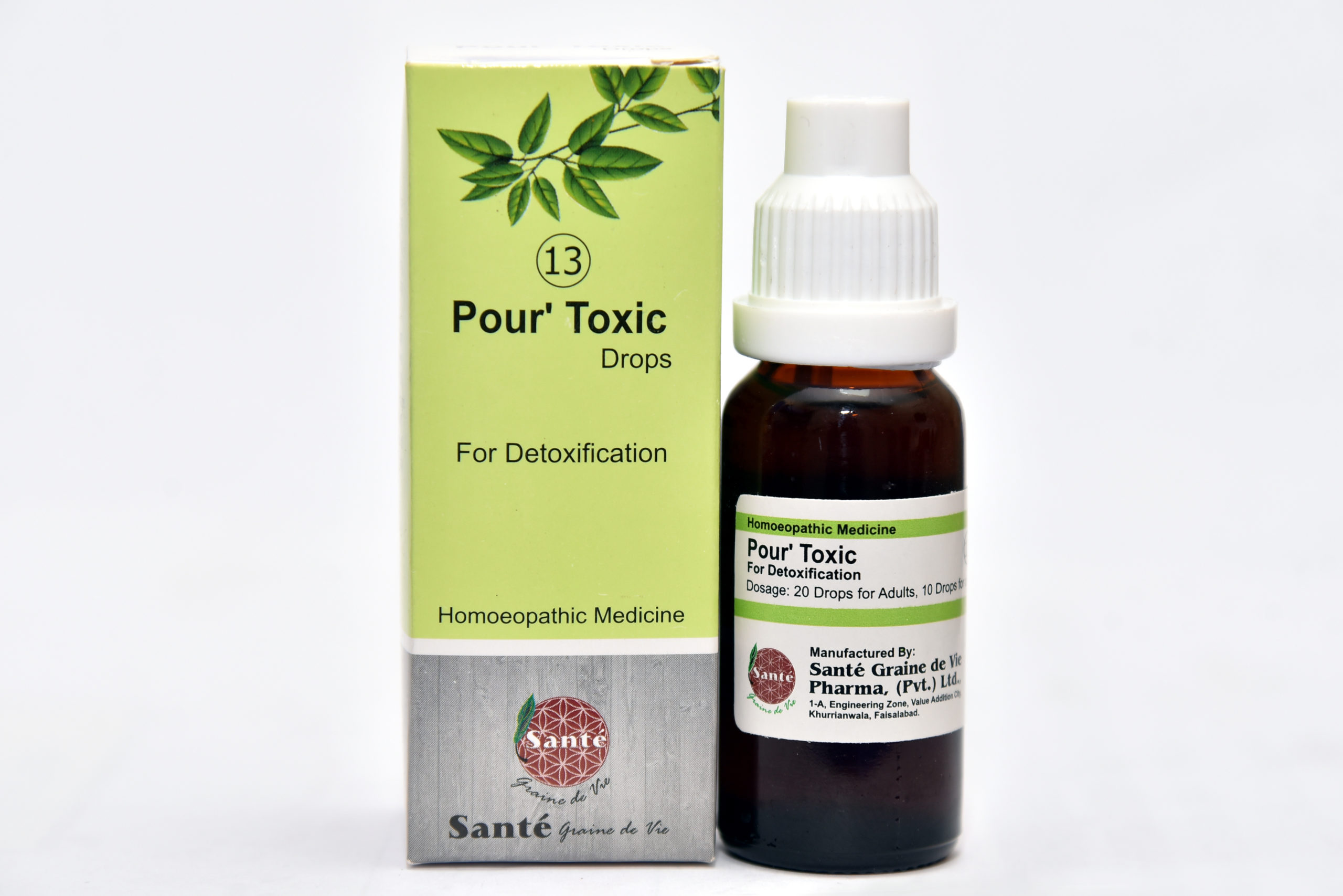 Description SD-13 POUR TOXIC (DROP) 20 ml For detoxification Ingredients/Composition: 100 ml contain: Azadirachta ind Q Lycopodium 30 Ginkgo biloba Q Echinacea Q Cholestrinum 30DH Indications Resting the organs through fasting, stimulating the liver to drive toxins from the body, promoting elimination through the intestines, kidneys, and skin. Improving circulation of the blood, refueling the body with healthy nutrients. Dosage and administration: If not differently prescribed adults take 20 drops three times a day. Children take 10 drops three times a day. For pediatric doses. Consult your health care practitioner. One bottle containing 20 ml liquid for oral administration, containing the active ingredients in the strengths listed under description. Warnings and Precautions: If symptoms persist, contact a licensed health care practitioner. If you have known sensitivity to any of the ingredients, please consult your licensed health care practitioner before use. If you are pregnant or breastfeeding, seek the advice of a health care professional before use. Keep out of reach of children.