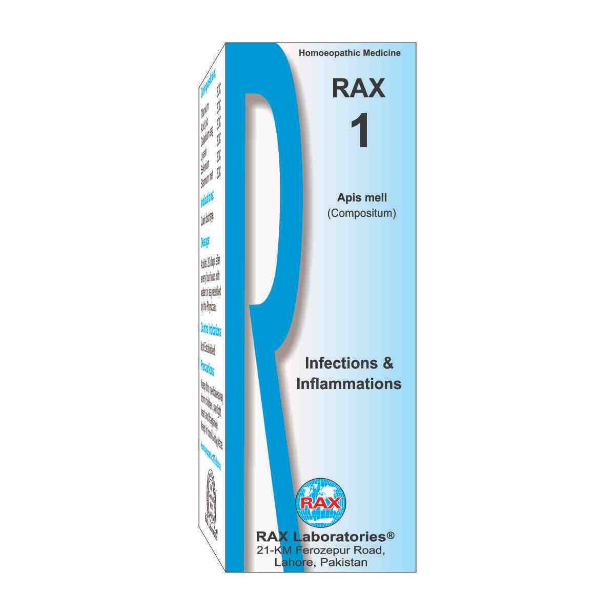 Indications: All kinds of acute and chronic inflammation such as inflammation of meninges, tonsils, ears, eyes and pus formation. Acute inflammation of mumps, testicles, pancreas, liver, gall bladder and kidneys. Appendix, female glands, trachea, intestinal inflammation and bacterial infection. RAX No. 1 is very effective in all kinds of inflammation.