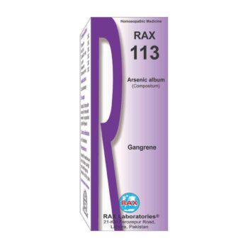 RAX Laboratories 29 August 2015 · Indications: The process of gangrene starts from puss formation anywhere in the body. Boils, carbuncles, offensive wounds with ulceration, skin becomes black, burning internally with pain, post operational disorders. Gangrene is very common in diabetic patients. Rax no. 113 recovers all types of gangrene.