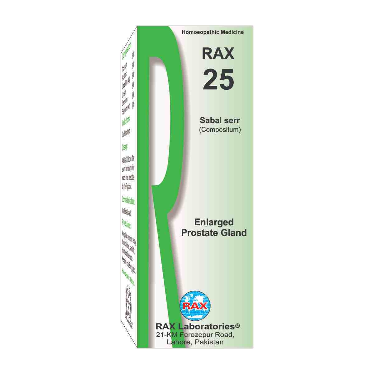 Indications: Dribbling of urine due to enlarged prostate. Retention of urine in swear cases. Sensation of burning in urination, prostate cancer and flow of prostatic fluid in urine. Rax No. 25 decreases the inflammation of prostate, normalize its size and flow of urine.