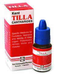 Composition: Arnica montana Ø, Allium cepa oil, Calendula officinalis Ø, Camphor oil, Cantharis Ø, Capsicum oil, Oleum morrhuae, Olive oil. Indications: Specific medicine for curvature leanness. Debility of male organ. Potentiates nerves veins and muscles. Direction of use: Massage the Tilla on organ before going to bed. Avoid intercourse during use. or as prescribed by Homoeopathic Doctor. Presentation: Available in 15ml packing. Precautions: Store in a cool and dry place. Keep away from the reach of children.