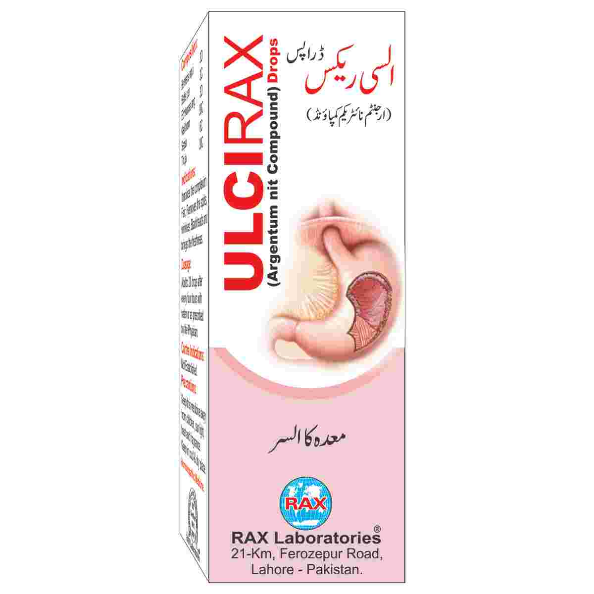 Indications: Stomach ulcer, acidity, burning heart, indigestion, gas, colic, constipation or diarrhea, lack of appetite. Protrusion of abdomen after meals, sour eructation, nausea, vomiting, sour or bitter taste of mouth. Ulcerax drops is good medicine for stomach ulcer.